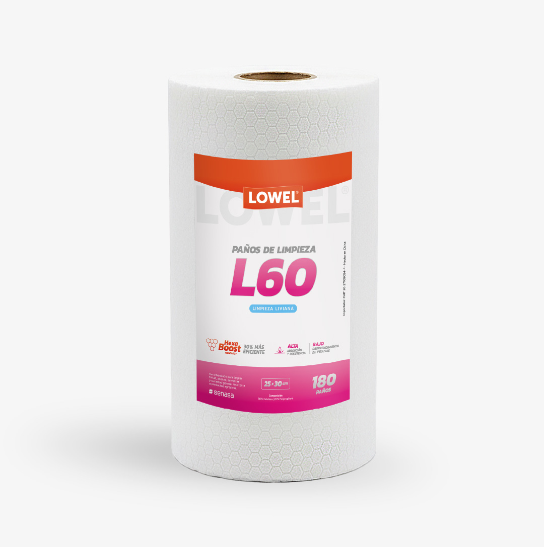 Lowel® L60 es un paño práctico, absorbente y resistente, pensado para limpiezas livianas pero efectivas. Gracias a su tecnología Hexa Boost, rinde más, seca más rápido apto para varios usos.